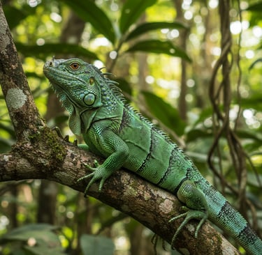 Unlike many iguana species that bask in the sun on rocks, these tree-dwelling lizards spend their days high up in the forest canopy. They're surprisingly arboreal, meaning they're perfectly adapted for life in the trees. Their strong limbs and sharp claws make them excellent climbers, and they'll often remain completely still for hours, making them incredibly difficult to spot even when you know they're there.