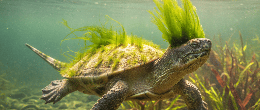 The Mary River turtle (Elusor macrurus) isn't just turning heads because of its funky hairstyle. That "mohawk" you see? It's actually algae growing on the turtle's head and shell! These turtles spend so much time underwater that algae takes root and flourishes, creating natural green streaks that look remarkably like a punk rock hairdo.
